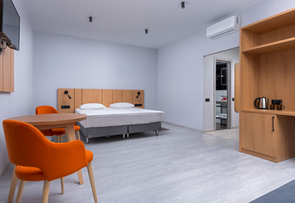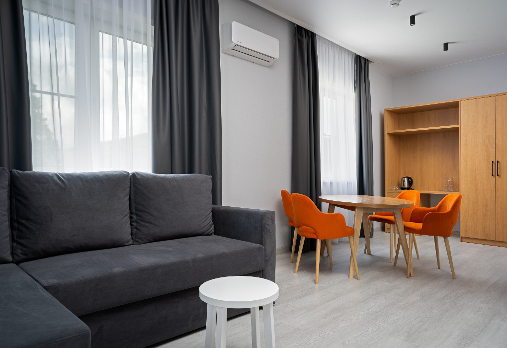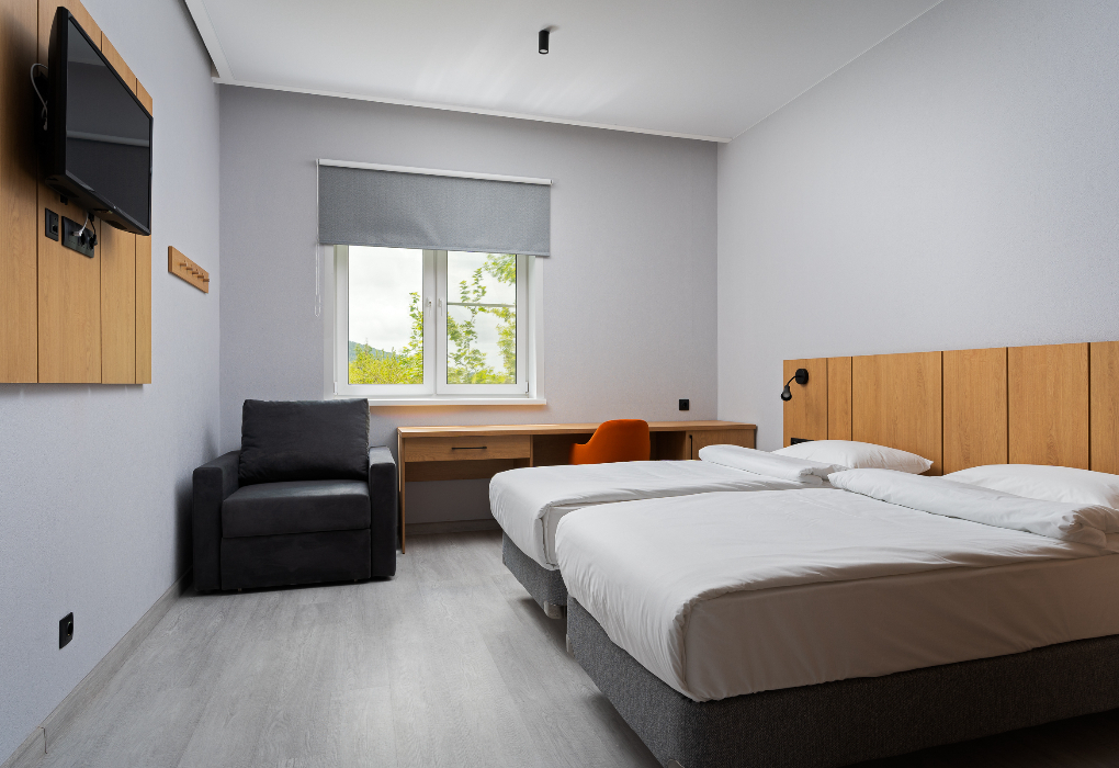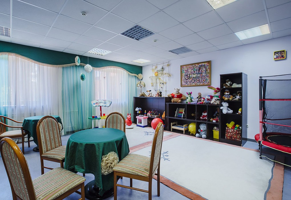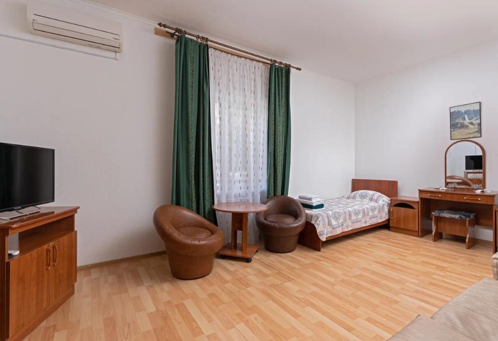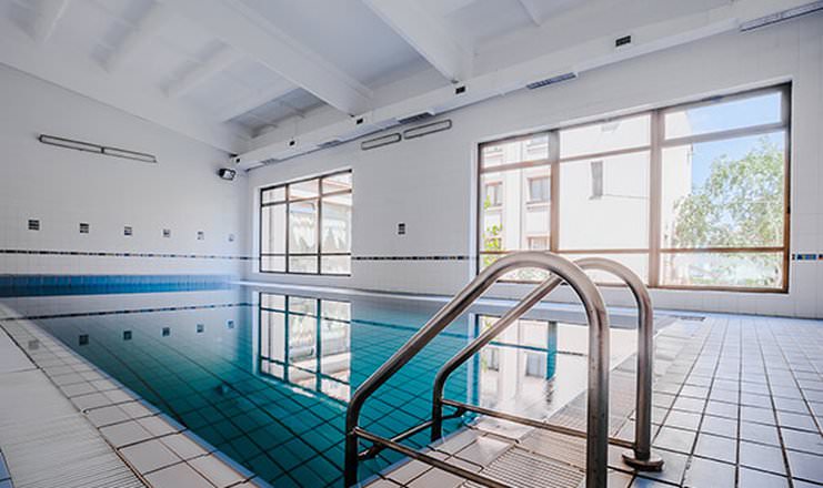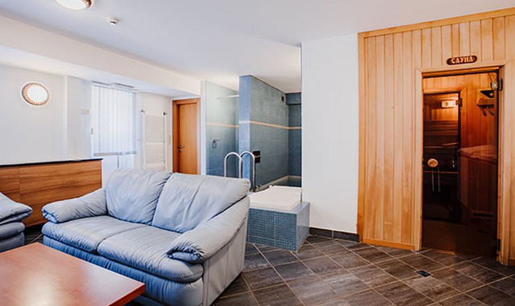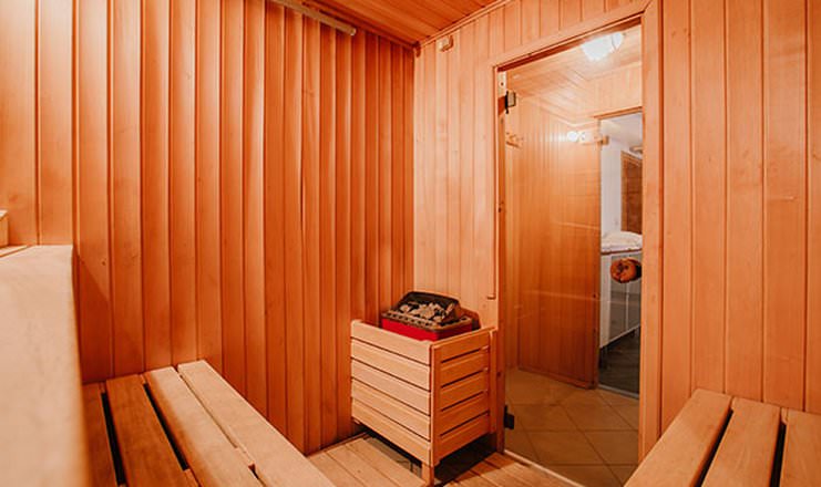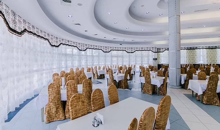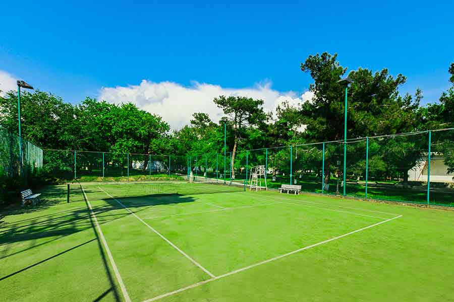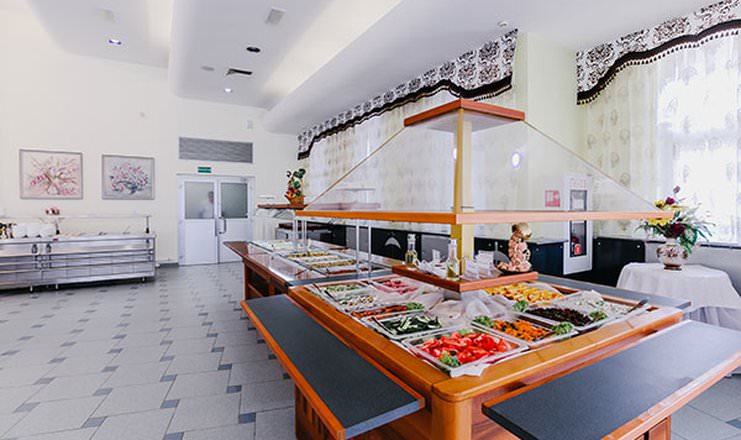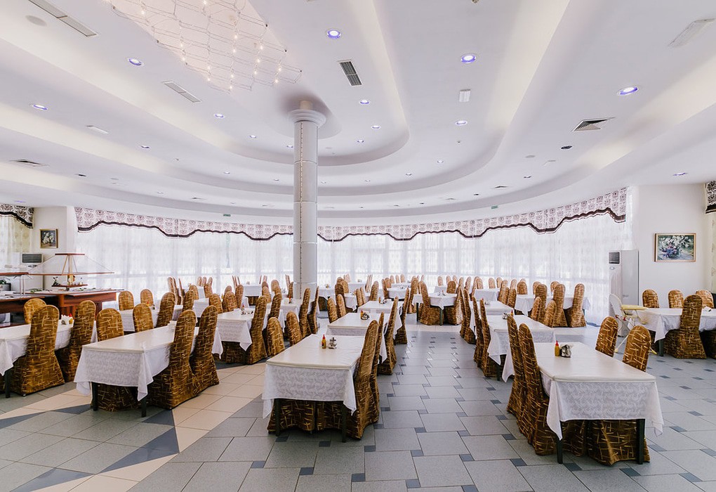 У санатория есть собственный оборудованный пляж с безопасным спускам, сауна с купелью, тренажерный зал, теннисный корт, волейбольная площадка. Также можно взять в прокат спортивный инвентарь.