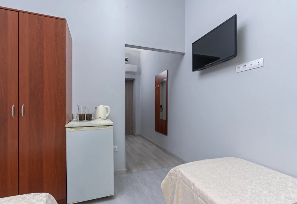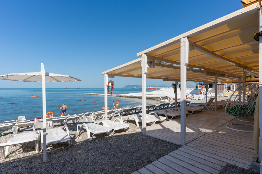 Санаторий «Солнечный» разместился на берегу Черного моря в 13 км от Геленджика в поселке Кабардинка — курортная зона еще с царских времен. В этом районе солнце светит 341 день в году.